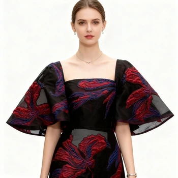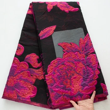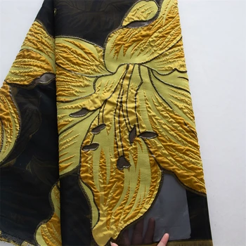 4614 Big Flower Pattern Africa Jacquard Brocade Luxury Fabric Floral Embroidery with Black Organza Tulle Mesh for Wedding Dress