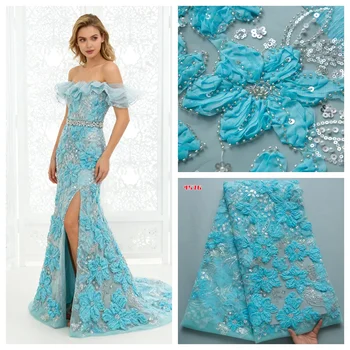 4576 Latest African Lace 3D Flowers with Beaded Design Nigerian French Mesh Lace Fabric Luxury for Wedding Dress High Quality