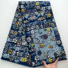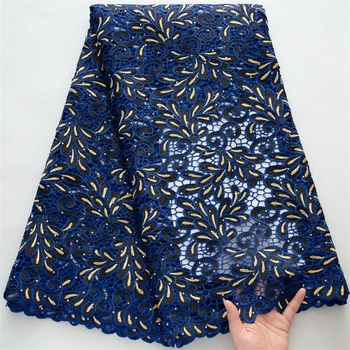 4629 Latest African Thread Lace Fabric with Sequins Navy Embroidered Lace Sewing Nigeria Fiber Mesh Suitable for Wedding Party