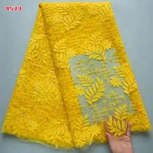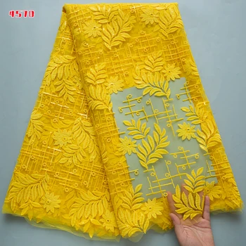 4570 Yellow African French Mesh Net Lace Nigerian Tulle Mesh Lace Fabric Embroidery Sequins Sewing for Evening Party Dress