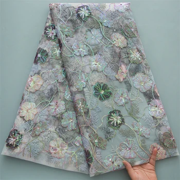 4589 Latest Designs Embroidered Sequined Colorful Flower French Tulle Lace Fabric for African Bridal Evening Party Dress