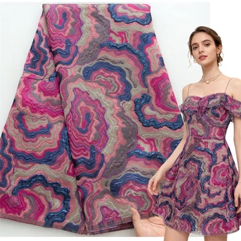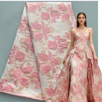4595 Jacquard Brocade African Clothing Fabric Nigeria Striped Texture Pink Abstract Flower Pattern Lace Fabric