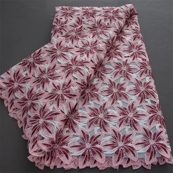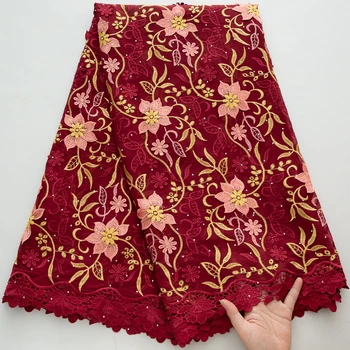 4603 Newest 3D Applique Lace Swiss Voile Fabric African Lace Embroidery Lace Fabrics Polyester 3D Flowers Wine Lace Fabric