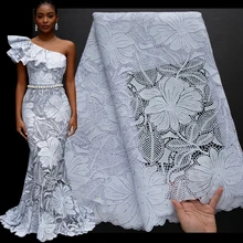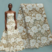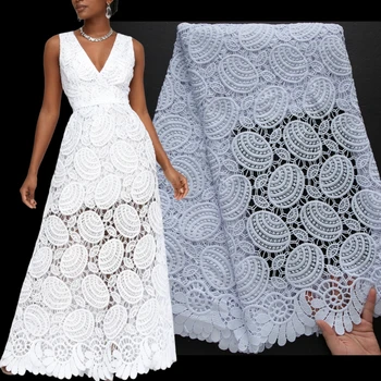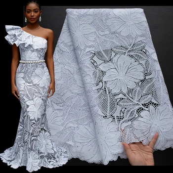 4569 Newest African Guipure Cord Lace Embroidery Fabric Nigerian Clothing Floral Flower Water Soluble Fabric for Party Dress