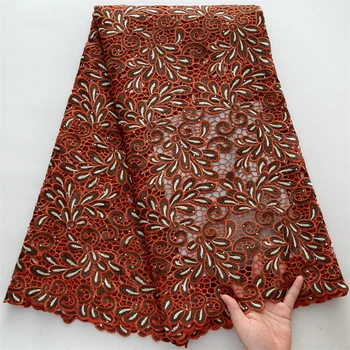 4626 Brown Cotton Materials Guipure Lace Fabric for Sewing Clothes Organza Water Soluble African Dress Fashion for Wedding