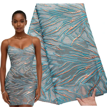 2626 New Blue High Quality Embroidered With Sequins African Velvet Lace Fabric 2022 Nigerian Tulle Lace for Women