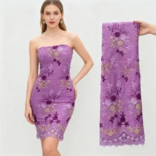 4565 Classic Africans Fabrics Gold Lilac Color Lace Fabric Flat Sequin Embroidery Fabric for Dress Evening Dress Stretch