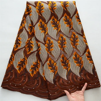 3714 Newest Swiss Voile With Rhinestones 5 Yards African Cotton Embroidery Lace Fabric for Sewing Women Wedding Dresses