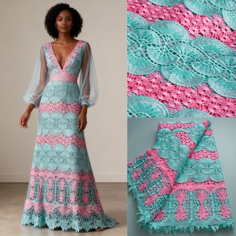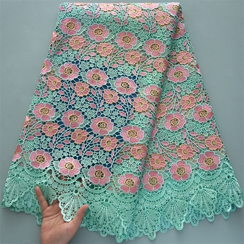 أحدث سلك جبر أفريقي ، ملابس نيجيرية ، قماش زهور قابل للذوبان في الماء لفستان الحفلات