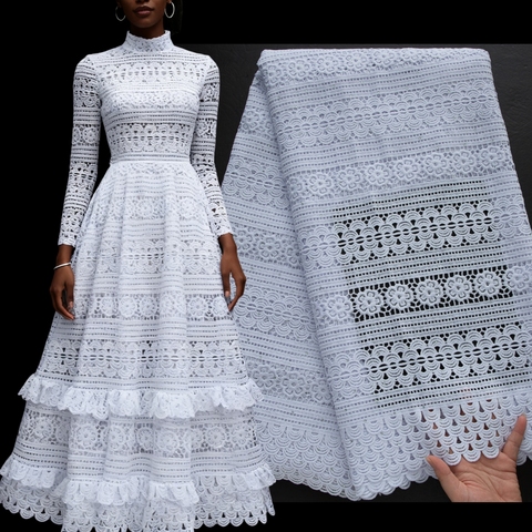 قماش دانتيل أفريقي عالي الجودة من الدانتيل الأبيض الخالص قماش دانتيل نيجيري قابل للذوبان في الماء لفستان الزفاف الأنيق