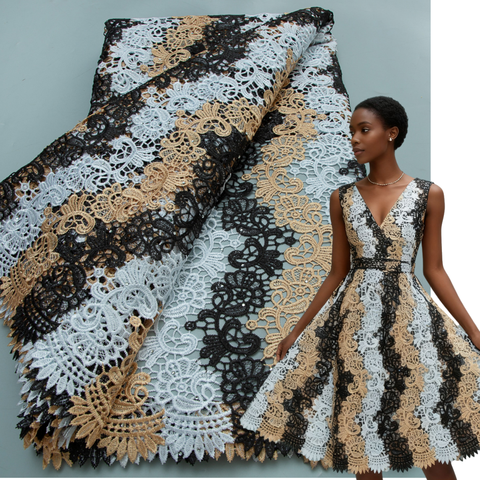 دانتيل بألوان ثلاثية قابل للذوبان في الماء دانتيل نيجيري أفريقي دانتيل حبل جبير فرنسي مع أحجار لفساتين الحفلات والتطريز بجودة عالية