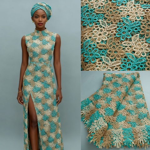 4632 5 ياردات من قماش الدانتيل الأفريقي النيجيري بنمط الجيبير مع أنماط زهرية معقدة، قماش تقليدي أفريقي