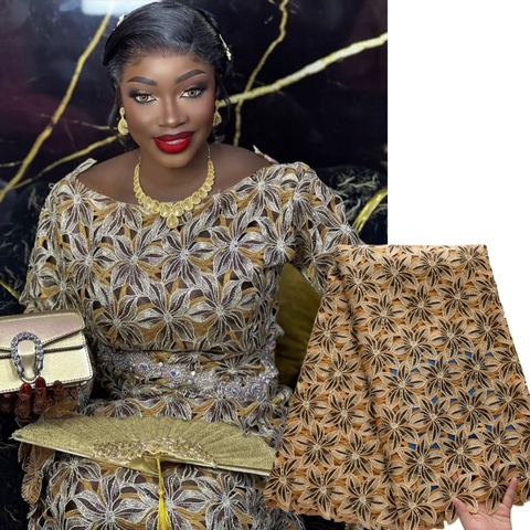 قماش دانتيل أفريقي 4629، نسيج دانتيل حبل، قماش جيبير للخياطة والحرف اليدوية، نسيج ذهبي للزفاف والعرائس للنساء، قماش شبكي للحفلات