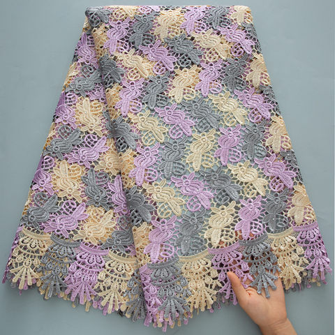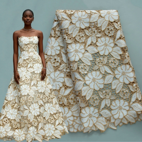 قماش دانتيل أفريقي 4629، دانتيل جيبير أنيق بلون واحد قابل للذوبان في الماء، مواد للحرف اليدوية والملابس النيجيرية وخياطة الفساتين