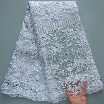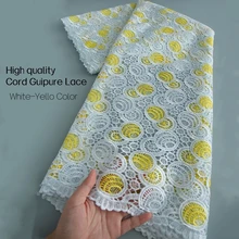 4025 White Sequence Sequins Nigerian Cord Guipure Lace Fabric High Quality 5 Yards Water Soluble African Lace Fabric for Dress