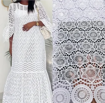 4550 High Quality Mesh Guipure Cord Embroidery Lace Fabric African Bridal White Water Soluble Net Lace Fabric for Wedding Dress