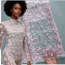 4545 3d Flower French Luxury Mesh Flower Embroidery Lace Fabric African Handmade 3D Applique Lace Fabric for Women Wedding Dress