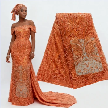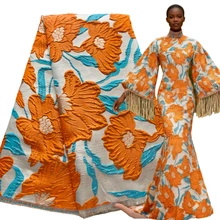4558 Orange Dress High-Quality African Gold-Plated Brocade Fabric 5 Yards Cheaper French Jacquard for Craftsmanship Party Cloth