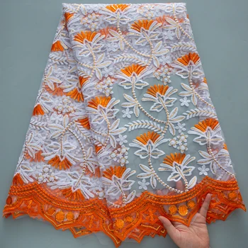 4549 Hot Sell Embroidery Pure Cord Lace Fabric African Rope Lace Clothing Floral Flower Guipure Fabric Royal Orange