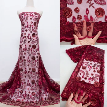 4521 Red Mesh Net Lace African French Tulle Mesh Nigerian Lace Fabric Embroidery Sequins Elegant for Evening Party Dress